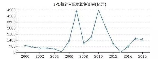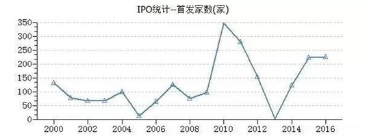 不过相较之下,不论是发行新股数还是IPO募资规模,2016年都远没有达到A股历史上的巅峰水平。据统计,2016年已经发行上市的新股共有227只,历史排名第三,仅相当于2010年度348只新股的60%左右;而2016年IPO募集金额不足1500亿元,仅相当于2010年4885.14亿元的30%左右。