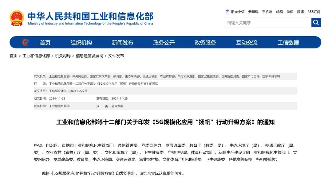 11月25日,工信部等十二部门发布关于印发《5G规模化应用“扬帆”行动升级方案》的通知(以下简称《方案》)。