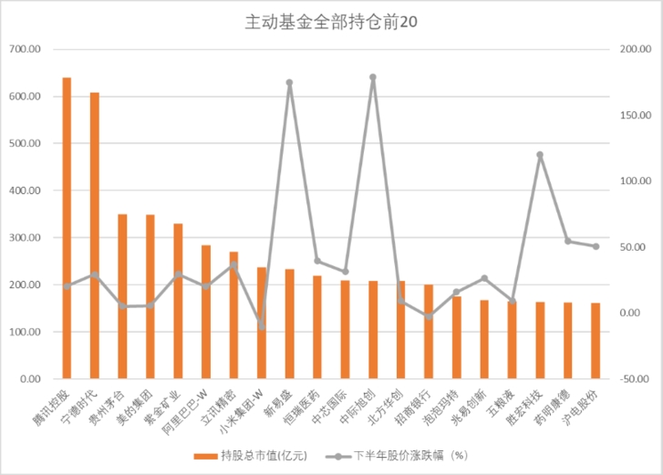 更重要的是,这批新抱团股贡献了惊人的超额收益,成为市场瞩目的焦点。证券时报基金研究院统计显示,主动基金半年报全部持仓前20大股票7月份以来平均回报达到42%,这些股票全年的平均回报更是高达103.8%,远远超过全市场各大主流指数同期表现。