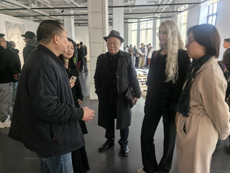 (观展嘉宾在著名艺术家丁设作品“又见”前合影)