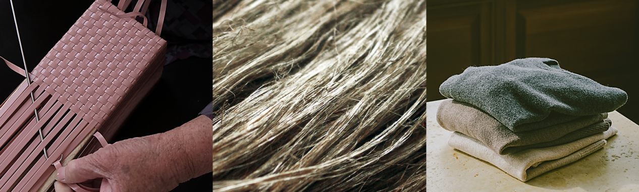OBP系列手编包编织过程、汉麻系列服装采用的汉麻素材、羊绒系列服装