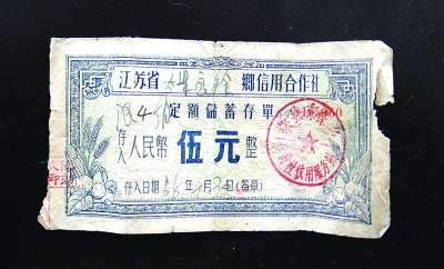 家住姜堰市梁徐镇的陈余胜的母亲春节前在家中意外找到了一张53年前的5元“限4个月定额储蓄”存单。3月15日,陈余胜在记者陪同下,来到当地银行兑换,银行方面称根据有关规定该存单目前只能兑10.8元。