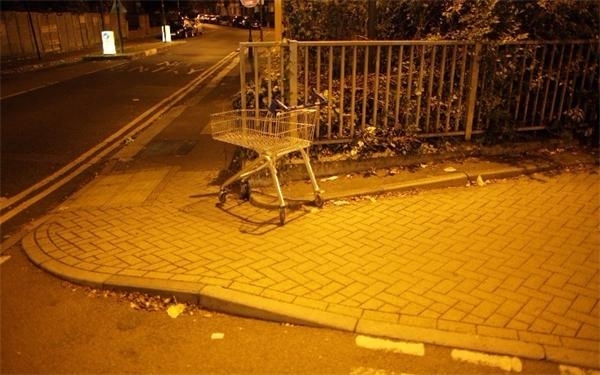 从超市推回来的手推车,照理说这不能推走吧,不知道谁就这么公然把它推回了家,然后扔在了路边。