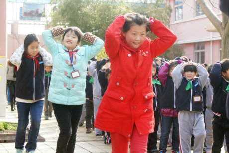 3、正在上课的学生,要在老师的指挥下迅速抱头、闭眼,躲在各自的课桌下,绝不能乱跑或跳楼,地震后,有组织地撤离教室,到就近的开阔地带避震。