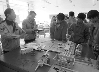 大学生技师班在上实践操作课,班里学生都是回炉的大学生。