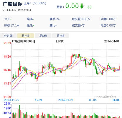 4月5日,广船国际(600685,收盘价17.14元)公告称,实际控制人中国船舶工业集团 (以下简称中船集团)正在谋划与公司的有关事项,公司自2014年4月8日起连续停牌5个交易日。