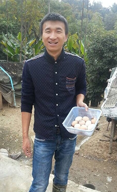 詹思传生于1990年,蕉城区漳湾镇岭后村人,2012年毕业于厦门华天涉外学院物流专业。如今的他,是一个经营土鸡、土鸡蛋生意的“土老板”。