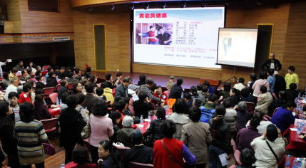 上月28日,家长聊天会开始之前,活动举办地巾帼园婚介所门口已经挤满了人,有些家长是特地请假而来。不时有没能拿到入场券的家长在门口张望,寻求进入场内的途径;也有一些家长拿着子女的照片在场外询问,希望通过这种方法找到合适的对象。而在场内,家长们也抓紧时间了解情况,互留联系方式,更有心急的家长直接上台,推介起自己的孩子。不少家长都是从人民公园相亲角转战而来,还有一位母亲举着牌子满场转悠,为在新加坡工作的儿子找对象。虽然儿子1986年出生,并不算很着急;但她还是表示,恋爱到结婚有一个过程,想早点开始寻觅,多一点机会。