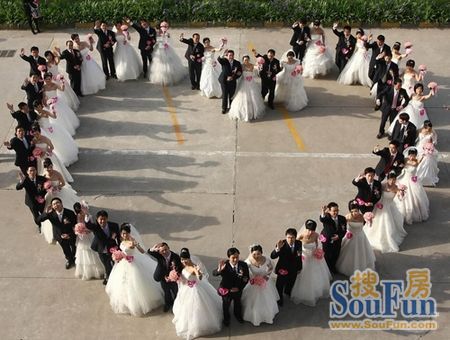 3、无数恋人不约而同走进了婚姻殿堂,他们终于买得起房子搭建自己的爱巢了。各大酒店、饭店的婚礼预约顷刻爆满,集体婚礼成为流行。