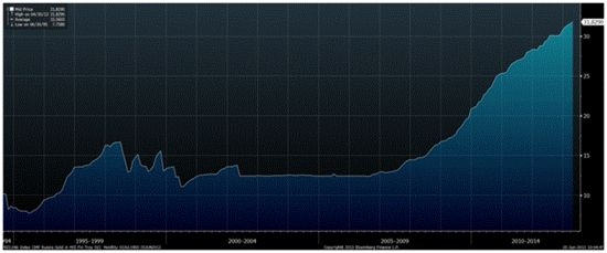 (1995-2004年俄罗斯黄金储备变化;来源:彭博)