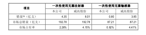 但这一切美好前景似乎跟三鑫医疗没多大关系。数据显示,公司报告期内国内市场占有率不仅份额较小,无明显增长趋势,2013年还出现下滑,2011年-2013年三鑫医疗国内市场占有率分别为0.42%、0.45%、0.40%。其中注输类产品无论从销售数量还是市场份额上,都与主要竞争对手威高股份相比存在较大差距。