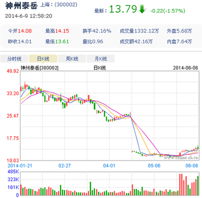 “EASports,ChallengeEverything(EA体育,挑战一切)”——这句经典的开场白对于热爱足球游戏的玩家并不陌生。如今美国 EA(ElectronicArts)公司针对世界杯最新的手游《FIFA2014巴西世界杯》也将亮相,而与之携手的正是A股上市公司神州泰岳(300002,收盘价14.01元)6月6日(上周五)盘中神州泰岳一度涨至5.84%。