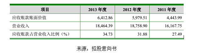 2012 年及 2013 年末应收账款余额占营业收入的比例较 2011 年有所提高,对此,公司解释称,主要原因系受宏观经济形势的影响,公司对于部分长期合作的老客户和大客户根据其历史信用记录和现时资信状况适当放宽信用期所致。