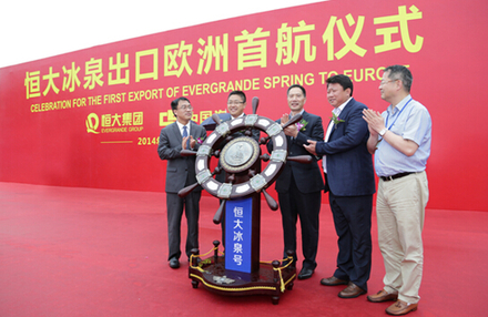 【上海热线财经讯】6月25日,恒大冰泉出口欧亚首航及首发仪式分别在上海市洋山深水港、吉林省白山市火车站同时举行,为恒大冰泉出口全球正式拉开帷幕。在出口欧洲首航仪式上,恒大集团副总裁刘永灼、恒大矿泉水集团副总经理杨华锋和中国海运总公司董事总经理张国发都信心满满。纷纷表示这是中国矿泉水第一次出口全球,开创了规模最大、规格最高、影响最深的中国矿泉水出口纪录。