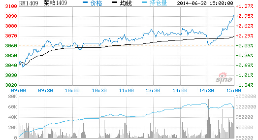 菜粕主力合约RM1409先跌后涨,盘中增仓超过16万手,多空对决异常激烈。菜粕后市会不会一路向上走出逼空行情?让我们拭目以待。收到菜粕强势影响,豆粕期货今日也小幅收红。