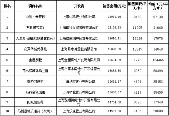 福州区域一周楼市成交排行