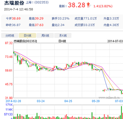 《每日经济新闻》记者注意到,自今年1月9日杰瑞股份股价到达56.69元(前复权,下同)的高位后,就持续疲软,一路下跌至7月2日的35.44元。