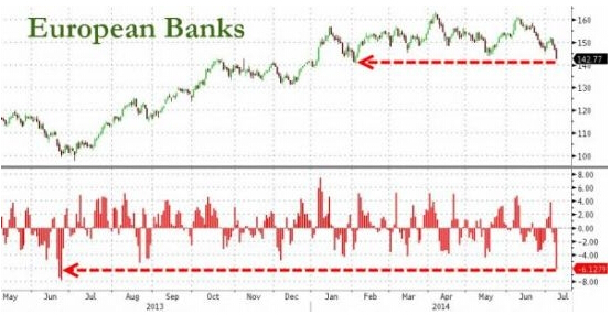 自上周五(7月4日)奥地利最大的银行奥地利第一储蓄银行(Erste Bank)股价于暴跌,并拖累欧洲银行股板块整体下跌后,过去三个交易日欧洲股市银行板块已累计下滑超过6%,跌至5个月低点,创13个月最大跌幅。同时欧洲股市周二(7月8日)全线大跌主要也是因欧洲银行板块领跌所致。