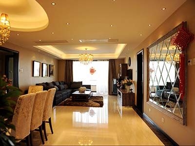 客厅是家居最主要的公共活动空间,不管你是否做人工吊顶,都必须确保空间的高度性,这个高度性是指客厅应是家居中空间净高最大者(楼梯间除外)。这种最高化包括使用了各种视错觉处理。
