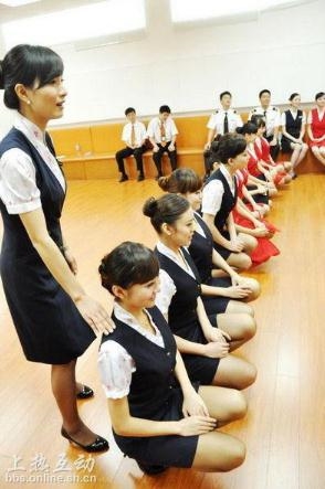 “空姐蹲式服务”走红 男乘客害怕把持不住
