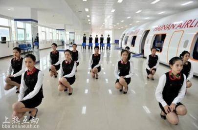 “空姐蹲式服务”走红 男乘客害怕把持不住