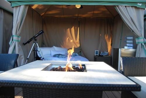 希尔顿头岛酒店是一家四星级酒店,位于加利福尼亚南部。该酒店除了有传统的室内客房,还会在海滩边提供一系列野营式客房。这些野营式客房虽被置于帐篷之内,但绝对没有听上去那么寒酸——麻质寝具、洁净的浴室、电视冰箱、火炉……一切标准的客房配备在其内应有尽有,甚至还会有供观景用的望远镜。在享受周全服务的同时,入住者还可打开客房周围的活动帐篷,随时欣赏客房周边的美景,可谓一举两得。