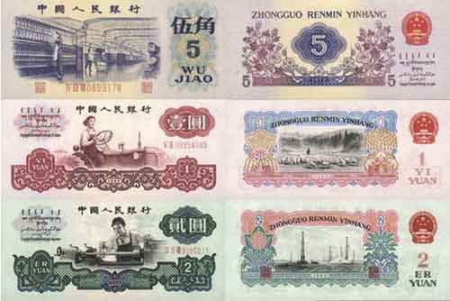为了促进工农业生产发展和商品流通,方便群众使用,中国人民银行于1962年4月20日开始发行第三套人民币。第三套人民币和第二套人民币比价为1:1,并在市场上混合流通。