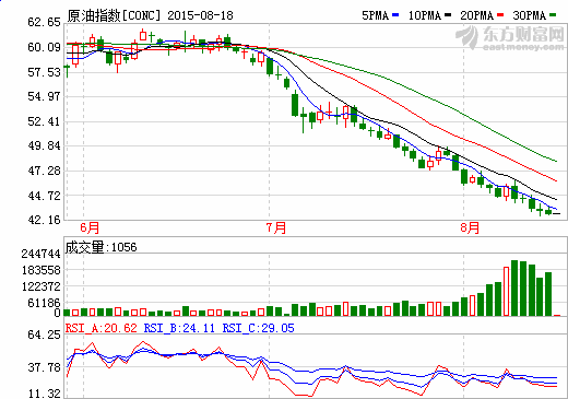 美国原油期货收低1.07美元,报每桶42.23美元,盘中触及41.91美元的2009年3月来最低。