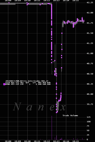 北京时间06:10左右,WTI原油一度急跌逾2美元,跌破40关口,最低至每桶39.55美元,但随即快速反弹至42美元附近。