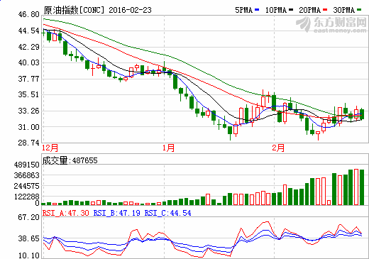 美国WTI原油4月期货收跌1.52美元,或4.55%,报31.87美元/桶。布伦特原油4月期货周二收跌1.42美元,或4.09%,报33.27美元/桶。