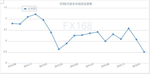 (美国2月就业市场状况指数走势图,来源:FX168财经网)