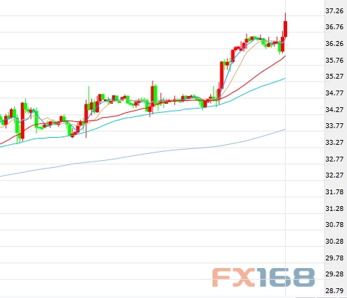 (美指小时走势图,来源:FX168财经网)