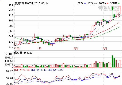 周一(3月14日)早盘,期市全线大涨。其中,焦炭涨停,焦煤涨3.28%,动力煤涨2.81%,铁矿石涨2.08%,橡胶涨2.21%。沥青、棕榈油、沪铜、菜粕、玻璃等涨幅超1%。跌幅方面,塑料跌1.91%,聚丙烯跌1.22%。