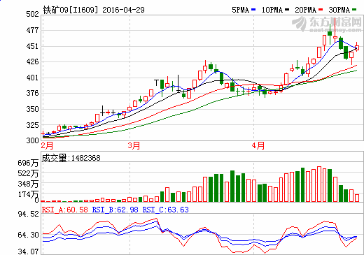 小结:隔夜I1609合约高开高走。国产矿市场价格暂无波动,进口矿市场价格大幅上调,干散货海运市场上涨。操作上建议,450下方短多,止损参考435.