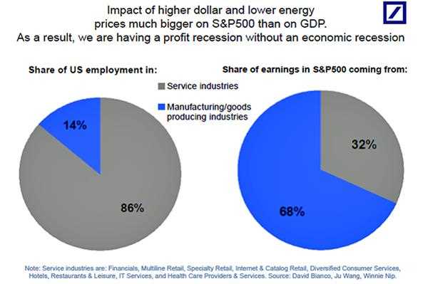 值得注意的是,虽然制造业构成了标准普尔500指数的绝大部分,但它对就业的贡献就相对小很多。因此Sl?k那个时候认为, 我们正在看到的是一场利润衰退,而不是一场经济衰退.