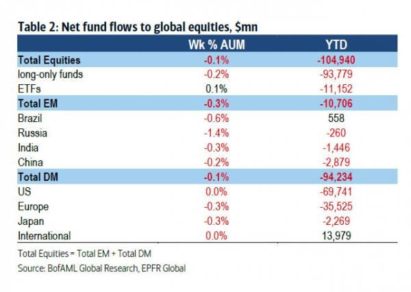 总之,除了交易所交易基金外的基金在过去一周里都遭到抛售,而2016年过去22周里全球股票基金流出的资金高达1050亿美元。