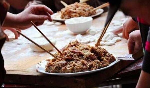 大师傅刚刚配好饺子馅,包饺子的妇女大军马上就要来到。