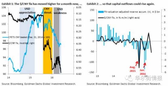 高盛认为重复发生的风险加大,反过来这又可能连带引起美联储收紧政策,继而美元走强。高盛称之为‘人民币-美联储公开市场委员会货币政策循环’。在这个循环中,美元兑人民币双边汇率的重要性可能放缓美联储正常化货币政策的步伐,这点高盛的美国团队也已经强调过了。