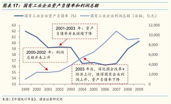 1999年债转股后,国有企业实际效益并没有实质性的改善,债转股所谓的成果只是企业账面上数字的变化。相关数据显示,2000年债转股企业每年减少利息支出200多亿元,企业资产负债率由原来的73下降降到50以下,80%债转股企业能转亏为盈。债转股企业亏损额由1999年上半年的70.4万亿,下降到2000上半年的5.44亿元,同比减少65亿元。但是资产负债率、亏损额等指标的好转能反映债转股实际的成果吗?我们认为并不能。原因是:1)债转股后,企业股本上升,负债下降,企业资产负债率自然立刻下降。2)债转股后,利息费用下降,企业利润自然上升,亏损额自然下降。