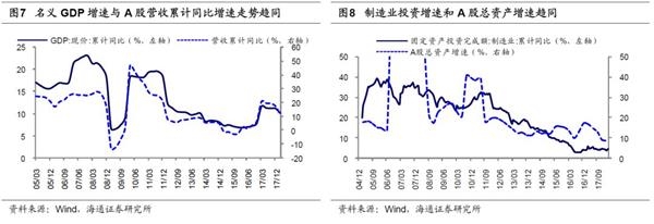 供给侧改革背景下营收比资产更快增长将推升资产周转率。一般来讲,资产周转率=营收/总资产,分子分母端增速差异将影响资产周转率变化。从分子端看,名义GDP增速与A股营收增速走势趋同,特别是随着近年来股市逐渐成为反映经济的晴雨表,两者走势更一致,2005年以来两者相关系数为0.86,而2013年以来达0.94。之前多篇报告我们提出新时代基本面特征为经济平盈利上,Wind一致预期显示2018年GDP同比为6.73%,CPI同比为2.23%,PPI同比为3.27%,实际GDP保持平稳增长,CPI和PPI两者逐步靠拢,预计名义GDP保持在9%左右。从分母端看,制造业投资增速和A股总资产增速走势趋同。自2015年11月供给侧改革提出以来,制造业投资增速从15年11月的8.4%降至18年5月的5.2%,A股总资产增速也从15Q4的15.1%降至18Q1的8.5%。在供给侧改革持续推进下,制造业投资将保持低速增长,同时A股总资产增速也将放缓。自2011年Q1起营收增速长期低于总资产增速,这反映实体经济供给过剩,直到17Q1营收增速才超总资产增速,资产周转率初步改善,推动ROE回升。2005年以来A股资产周转率均值为0.236次,高点在05Q3,为0.577次,低点在16Q2,为0.160次,18Q1A股资产周转率为0.177次,在名义GDP比制造业投资更快增长的背景下,A股营收将比总资产更快增长,从而资产周转率将持续回升。从商业周期角度看,在供不应求时企业资产周转率提高,从而推升ROE,但当丰厚盈利刺激企业扩大再生产时,库存增加导致资产周转率趋于下降,从而带动ROE回落,18Q1ROE还未及2005年以来均值水平,目前无需过虑资产周转率迈入下行期。
