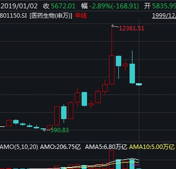 不过在本轮调整浪潮中,不少医药牛股神话被打破。如恒瑞医药,该股曾于2018年6月7日创下历史最高价,最新股价较最高价调整幅度为36.4%,最新年线收出一根长长的上影线。从其历史年线来看,恒瑞医药股价此前走势基本维持上涨态势。