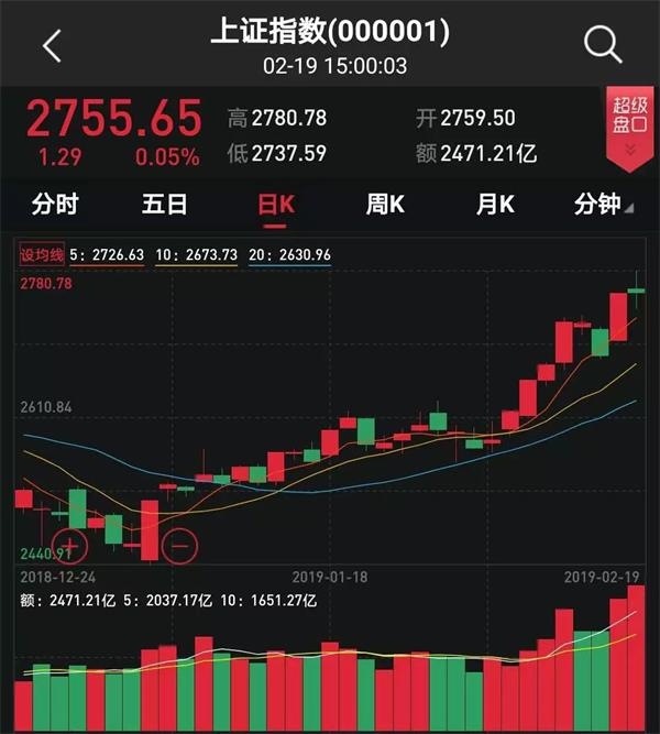 19日,A股三大股指涨跌互现,其中上证综指上涨0.05%,收报2755.65点;深圳成指下跌0.07%,收报8440.87点;创业板指下跌0.53%,收报1406.04点。