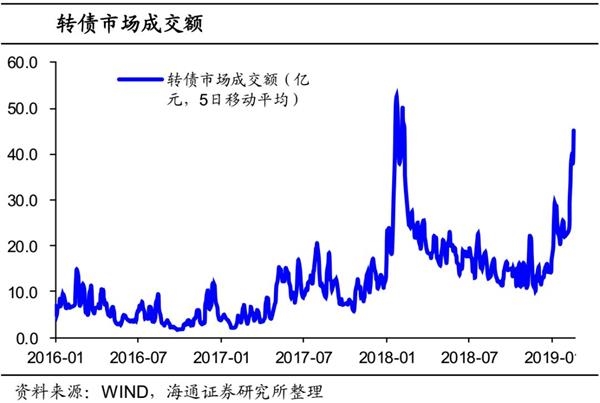 整体来看,转债市场19年以来的风险偏好明显回升,其中转债价格大幅上涨,成交量也明显提升。但纵向对比来看,转债价格、成交量等指标刚刚回到上一轮反弹高点( 18年1月左右)时的水平,而估值仍在上一轮高点之上。因此转债市场的风险偏好仍有提升的空间。