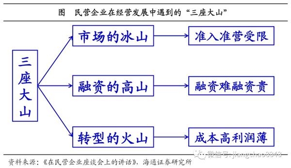 19年将如何激发市场主体活力、支持民营企业发展?目前,民营企业在经营发展中遇到的困难和问题集中表现为“三座大山”——市场的冰山、融资的高山、转型的火山,本篇报告中,我们将从“三座大山”着手,进行分析和展望。