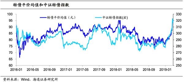 18年权益市场低迷,转债整体表现不佳。但进入19年以来,市场风险偏好明显回升,权益和转债市场均表现亮眼。截至3月13日,19年中证转债指数上涨了16.7%;我们计算的转债平价指数上涨了20.8%。同期上证综指上涨22.7%,沪深300指数上涨24.7%,创业板指上涨41.8%,上证50上涨18.5%。
