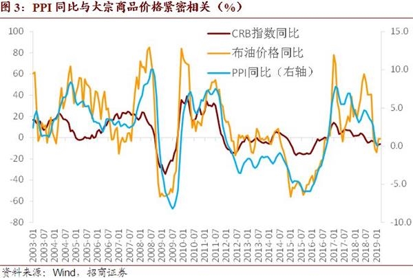 考虑到PPI从长期来看主要受到CRB指数与国际油价的影响,我们运用计量模型对PPI同比、CRB综合指数同比以及布油价格同比进行回归分析,得到如下估计结果:
