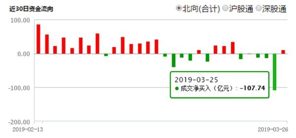 第四,北向资金出现短期流出迹象。从3月7日起,通过沪深港通投资A股的北向资金出现频繁的净流出迹象。3月25日,北向资金日净流出规模高达107.74亿元。