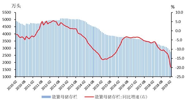 预计2019年3月、4月,养猪(能繁母猪)产能或达此轮周期最低点。