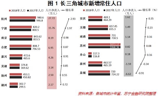与西安、重庆、郑州等中西部地区城市20万以上的人口增量相比,长三角城市仍有很大差距。